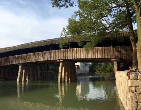 广济桥在当地这个地区还是很出名的,跟广东的广济桥同名,奉化这座桥是一座廊桥桥上有屋顶可以躲雨遮阳的地方,也作为一个交通设施。