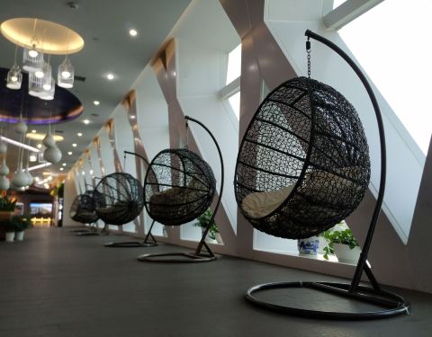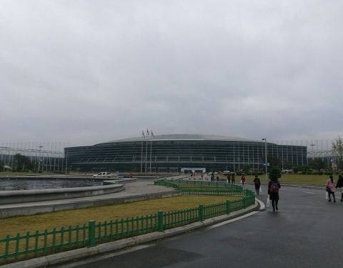 会展中心很大很现代化,建筑在地面看不出形态,地面怎么看都是冰山一角,唯有高空俯瞰才能感叹建筑的特色和宏伟。里面有一部分是卖家居的商场,不是全部会展空间。