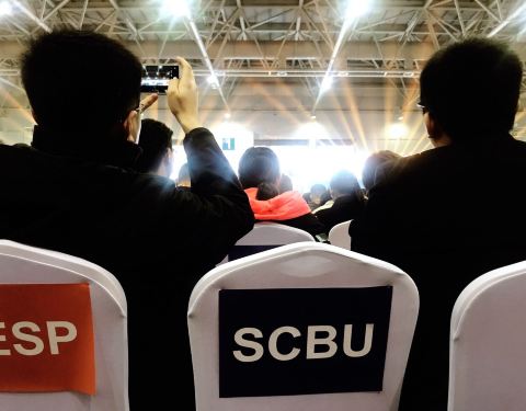 会场内部很大,暖气有点儿不足,穿少了会冷……