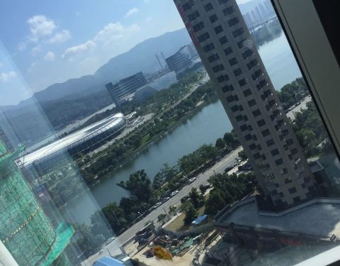 入住金源世纪,房间透窗望去,海峡国际会展中心。