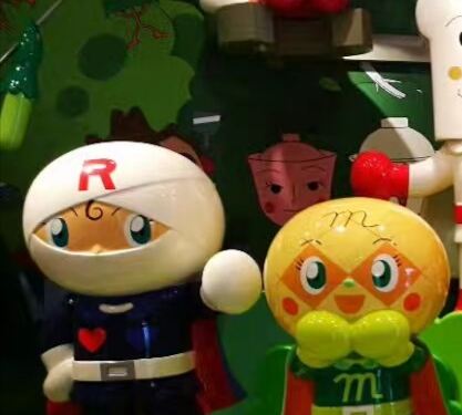 日本的动漫产业还是很发达的,而且它的衍生产品都做得十分的到位。面包超人博物馆不仅可以看到各种面包超人形象的东西,还可以买来吃啊