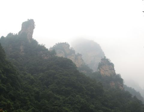 锦鼠观天是张家界国家森林公园十里画廊中的一处景观,由于十里画廊中的石峰林立,不同角度看都有锦鼠观天的景观,加上当时雾气比较重,更感觉有多处锦鼠在观天了。