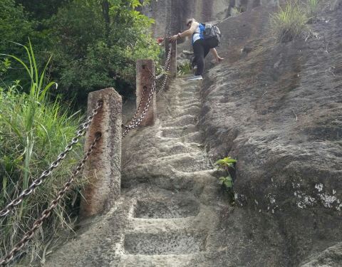 坡陡山峭。鼓山白云洞在鼓山的西北侧,是鼓山五大景区之一。因洞在海拔700多米处,常有“白云混入,咫尺莫辨”,故称白云洞。白云洞的奇岩险路,名不虚传的绝景,就在于它的险峻。坐公交,鼓山中学站下车,沿东三环路向北行走约500米即到埠兴村,村中有路上山。