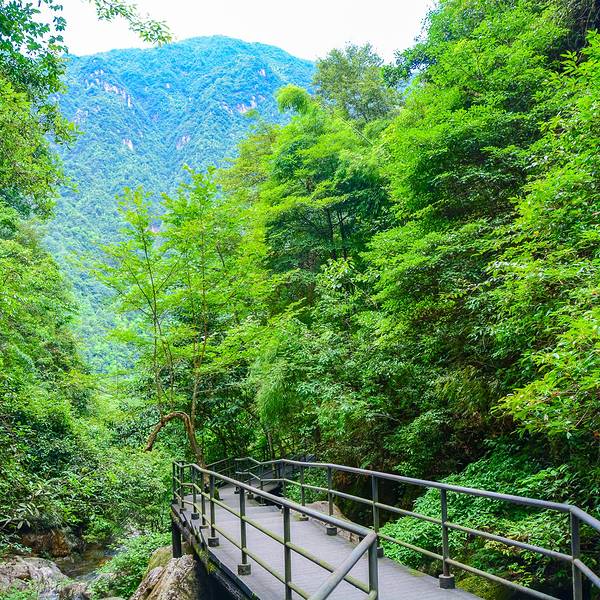 坐下来聊聊天,阿姐会跟你讲景区游览的建议及自己的家常,挺有意思。尽情感受负氧离子的环绕索桥之下,尽是如翡翠般碧绿的池水,让人看着心旷神怡。沿着栈道一路向上,满眼山清水秀、水色天光,湍急的水流泄下,成为一道道如纱般的瀑布。密林遮天