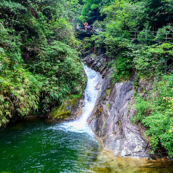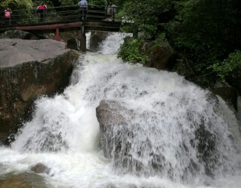 这个景点只看水!走过悬桥,清沏的小河,沿山谷一路而上,小溪淙淙、清潭碧涧,不多时就问鼎九叠瀑布。太短,意尤未尽的感觉!其间飞瀑袭人的清爽和负氧的清新是对登山人最好的赏赐!