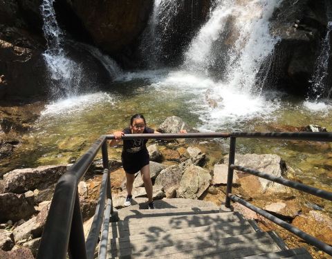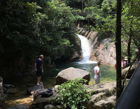 主要是看瀑布,从山下延峡谷一直往山上爬。瀑布就在身旁。去时刚下过雨,瀑布水量很大,很壮观。空气非常清新、峡谷两侧林木茂密,满目绿色,非常养眼。上山台阶修得很好,爬山不累也很安全,很值得一游。