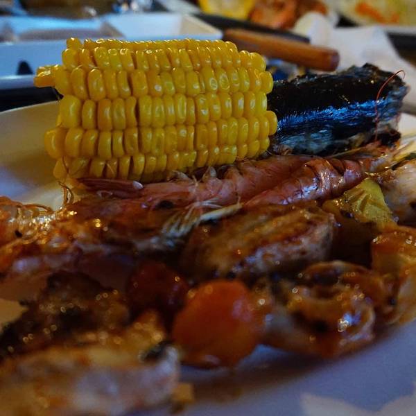 独木舟上观日落后其实还有一场海滩BBQ,因为下过雨的关系,BBQ被搬到了室内。而且与想象不符,居然不是自己烤,而是别人烤完端给你。完全没feel了好么,而且食物的量还特别少。