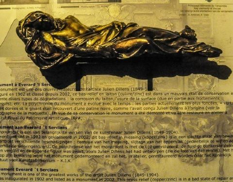 塞尔克拉斯卧像是为了纪念十三世纪比利时民族英雄塞尔克拉斯而建造的铜卧像,位于布鲁塞尔大广场的转角上,据说用手从左向右抚触,会带来好运 ,铜像已被抚摸得非常光滑。