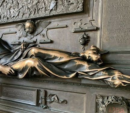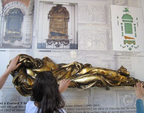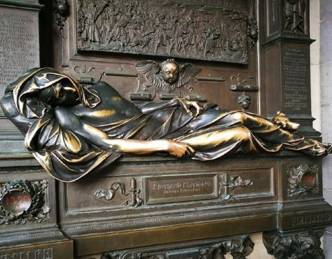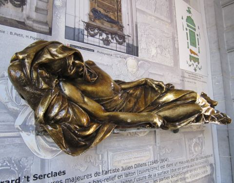 这个创作于19世纪的雕像作品的主角是比利时著名的14世纪的英雄人物,表现的应该是他临死时候的状态,据说用左手去触摸他的手腕会带来好运。