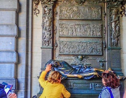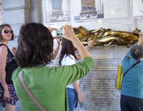 瞻仰比利时民族英雄塞克拉斯雕像,用左手触摸雕像手腕据说能带来好运。