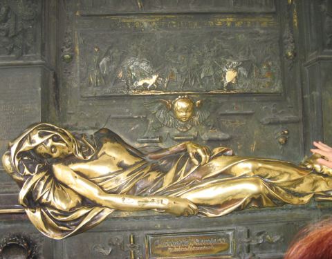 这个雕像可能表现了这个英雄人物垂死时候的状态,看上去让人有一些胆战心惊,这也是这个城市很有名的一个景点了,排队来触摸这个雕像人物手腕的游客很多。