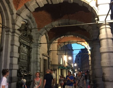 塞尔克拉斯是古时候比利时的民族英雄,后来遇刺身亡,这座雕像就是人们为了纪念他而建的。卧像就在大广场一侧的巷口廊下。据说用自己的左手去触摸雕像的右臂,会给自己带来幸运;也有说从左到右抚摸整座卧像,会将运气传递给自己......。游客们有事先了解的,也有时先不知现场效仿的(包括我)。雕像锃亮的部分都是游客的触摸的结果,这也算人们纪念他的一种方式吧。