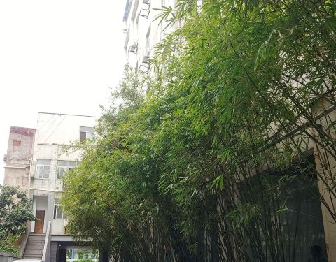 真没想到这个巷子里还藏了个美术馆,看上去不太显眼的门头,专门抬头才看到的。 玻璃大门都锁着,静悄悄的没人。从旁边的门进去看了看,大厅里放的还是十二月的展览安排,展厅门口也放着调整关闭的牌子,有人在展厅里走来走去,大约是准备布展么。 巷子里的一片竹林不错。