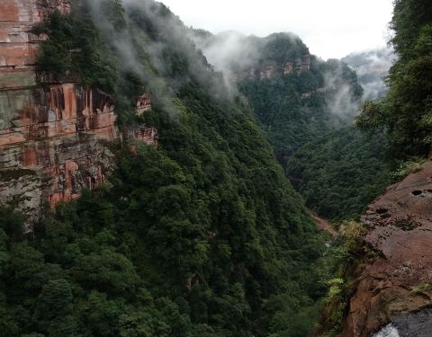 很漂亮的一片丹霞绝壁,还有条瀑布。
