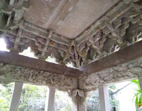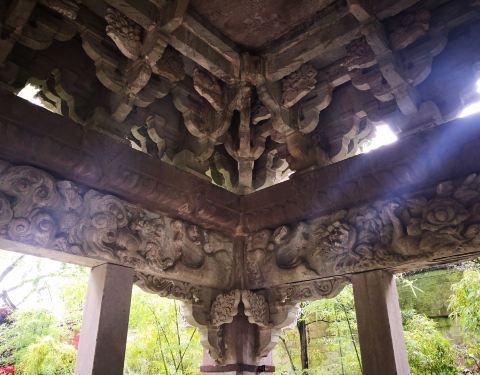 整个亭子的面积并不是很大,孤独的屹立在园林边上如今为了保护建筑,这里四个连廊都放置了两个混凝土的支撑柱,而上面的斗拱结构非常的复杂,却显得非常精致。整个亭子的面积并不是很大,孤独的屹立在园林边上。