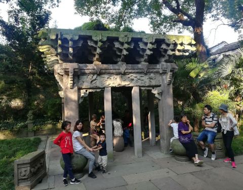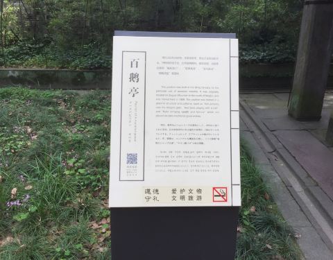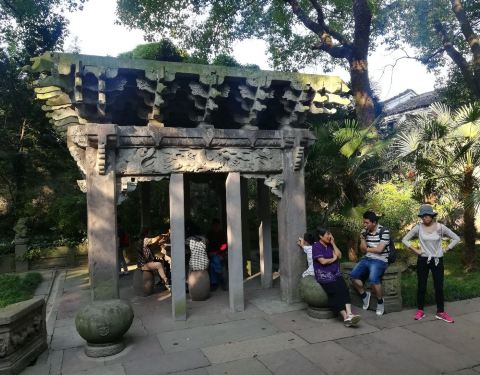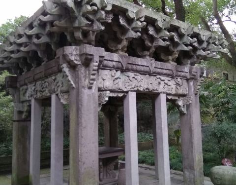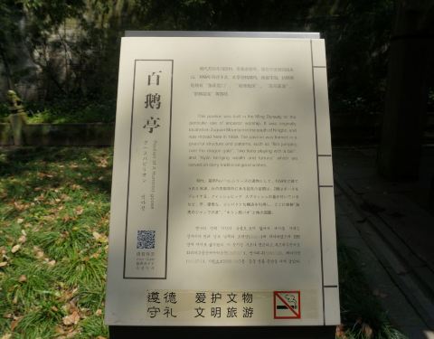 百鹅亭位于景区内的凝晖堂对面,其实只是一个石制的凉亭百鹅亭位于景区内的凝晖堂对面,其实只是一个石制的凉亭。看旁边的介绍整个亭子是从其他地方移到现在的位置,造型有点像笼子一样,不少人在里面的石凳坐着休息。