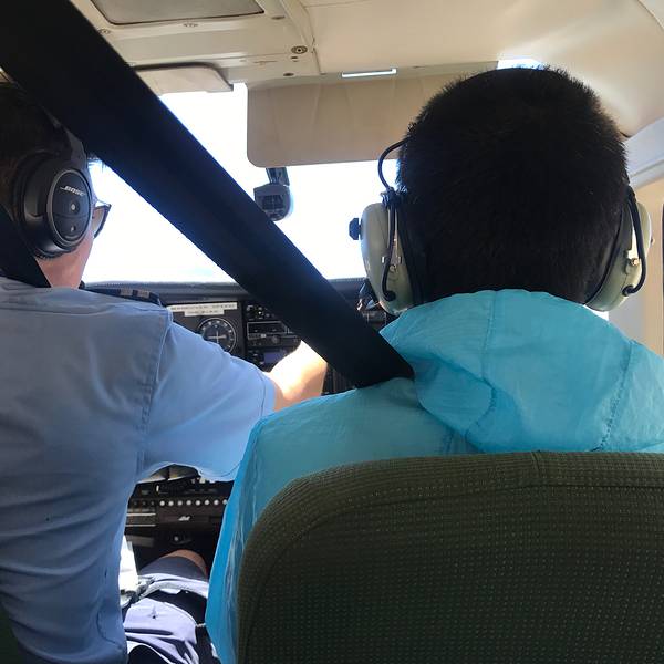 九点半起飞,不到九点准时到达机场。有一个台湾美女是接待,沟通无障碍,然后发现飞行员是一个大帅哥,瞬间心花怒放,可惜没有拍下来,算了已经被我记在心里了, 哈哈这是我们的飞机,算上飞行员可以坐7个人。 上...