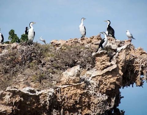 阿布洛霍斯群岛位于杰拉尔顿西侧不远,坐飞机的话10分钟就能看见群岛。群岛由100多个大小不同的岛屿组成,散落在印度洋中。整个群岛属于尚未开发的状态,岛上只有渔民,据说渔民一部分还是意大利人,所以喜欢把房子刷成各种颜色,给这片群岛徒增了一份浪漫。除了渔民,岛上就只有灯塔和沉船了。这片海域到处有暗礁,所以散布着好几艘沉船,也发生了很多有趣的故事。渔民们的生活看似无聊,可是陪伴他们的都是野生的海洋动物呢,即使在小飞机上也能看到时不时游荡在浅滩的魔鬼鱼,跳跃着海豚以及懒洋洋趴在沙滩上的海狮们。也就是因为没有对游客开放,所以才把生态保护的如此原始。