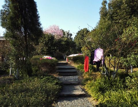 免费开放的公园,先看到的是费君庙,是个古迹,往南是片绿地公园,郁郁葱葱的,晾了不少衣服。