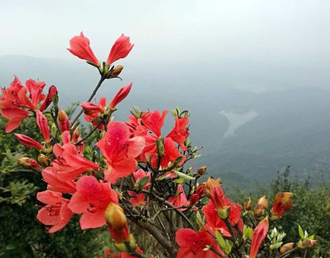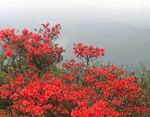 从化通天蜡烛山烛耸立于湖畔,峰影倒映湖中,湖光山色,天然妙成,如一幅水墨图画从化通天蜡烛山烛耸立于湖畔,峰影倒映湖中,湖光山色,天然妙成,如一幅水墨图画。在每年的杜鹃花花期,一片红灿灿的感觉,适合很多驴友的徒步路线。