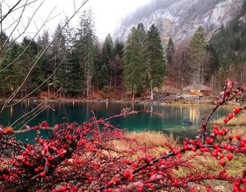 这里是蓝湖周围的众多湖泊之一。位于阿尔卑斯山的余脉上。湖不是很大,湖面也不是很开阔,周围布满雪松,景色在湖光山色的映衬下非常优美。