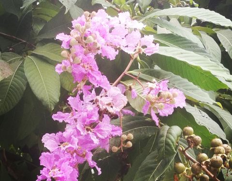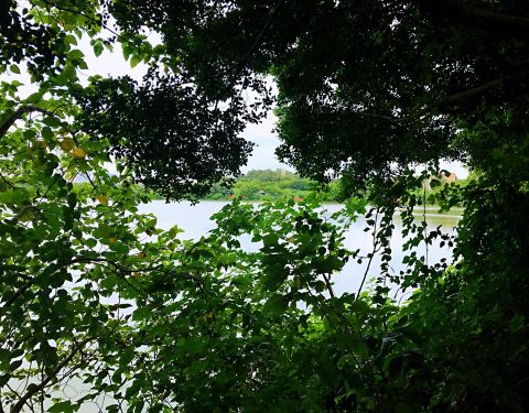周末下午去花都区,经过花都湖,于是停车进去走走。 花都湖位于新华街凤凰南路。从广州市区乘坐公交车过去,要坐地铁9号线到达莲塘站,再转乘公交车花1、花17到花都湖站下车,整个路程有点远。 花都湖非常大,有4300亩,里面有人工湖、雕塑园、 岭南庭院、湖中栈道、环湖绿道等众多的景点。 因为时间的关系,我只是沿着环湖绿道走了一小段。绿道上的游人不很多,有的骑着租来的两人或三人自行车,有的在步行,还有的是一家老小都来了,甚至还推着婴儿车。 环湖绿道,绿树成荫、鸟语花香,沿途有不少花儿在怒放,有的叫的出名字,有的不知名的。吹着凉爽的湖风,闻着花香,心旷神怡。