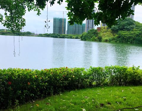 花都湖非常大,有4300亩,里面有人工湖、雕塑园、 岭南庭院、湖中栈道、环湖绿道等众多的景点周末下午去花都区,经过花都湖,于是停车进去走走。 花都湖位于新华街凤凰南路。从广州市区乘坐公交车过去,要坐地铁9号线到达莲塘站,再转乘公交车花1、花17到花都湖站下车,整个路程有点远。 花都湖非常大,有4...周末下午去花都区,经过花都湖,于是停车进去走走。 花都湖位于新华街凤凰南路。从广州市区乘坐公交车过去,要坐地铁9号线到达莲塘站,再转乘公交车花1、花17到花都湖站下车,整个路程有点远。 花都湖非常大,有4300亩,里面有人工湖、雕塑园、 岭南庭院、湖中栈道、环湖绿道等众多的景点。 因为时间的关系,我只是沿着环湖绿道走了一小段。绿道上的游人不很多,有的骑着租来的两人或三人自行车,有的在步行,还有的是一家老小都来了,甚至还推着婴儿车。 环湖绿道,绿树成荫、鸟语花香,沿途有不少花儿在怒放,有的叫的出名字,有的不知名的。吹着凉爽的湖风,闻着花香,心旷神怡。 展开