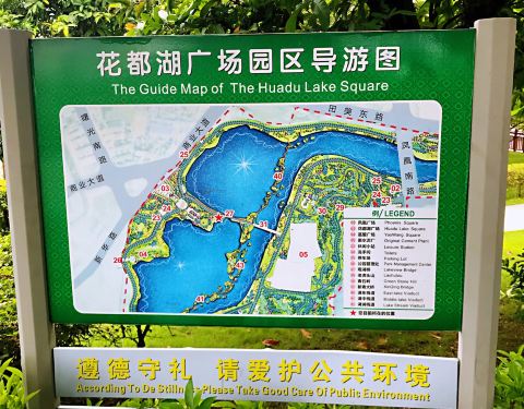 花都湖非常大,有4300亩,里面有人工湖、雕塑园、 岭南庭院、湖中栈道、环湖绿道等众多的景点