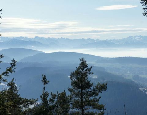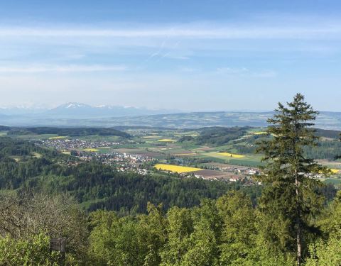 从这个最高点处看到的景色非常壮观,不仅能看到苏黎世市和湖区的景色,还能看到南面伯纳斯阿尔卑斯山脉