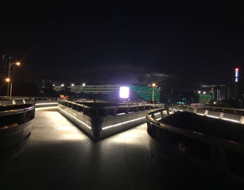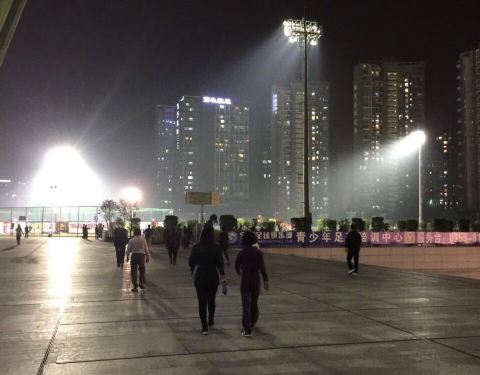 很大的体育场,篮球场,游泳池等。吃完晚饭可以来这里走走