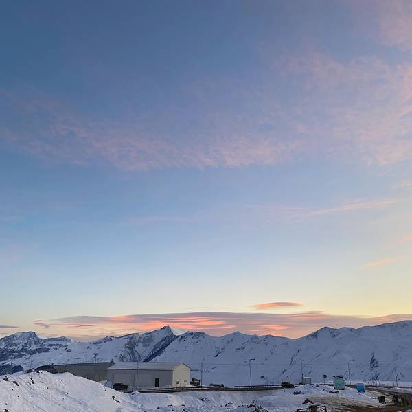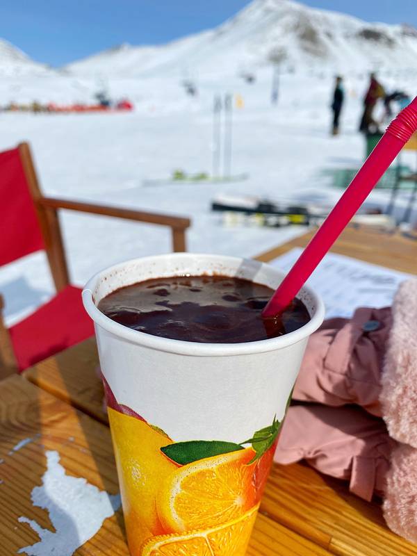火烧云般的日出超级美,转瞬即逝早餐时,连烤焦的饼都是爱你的模样虽然冰渣太多,但还是想继续尝试,而且今天租到的雪板和我的衣服头盔雪镜都很配呀!热巧是我在格国补充能量的快乐源泉雪场里快餐厅挺多的,好吃不贵傍晚来超市溜达一圈,买两瓶当地有名的红酒用粉色的纸擦pp,pp会变粉色嘛不仅日出美,粉色的日落也不逊色