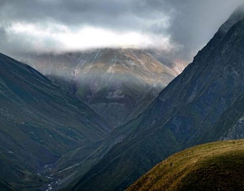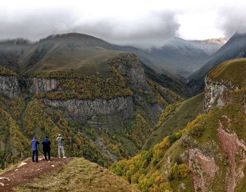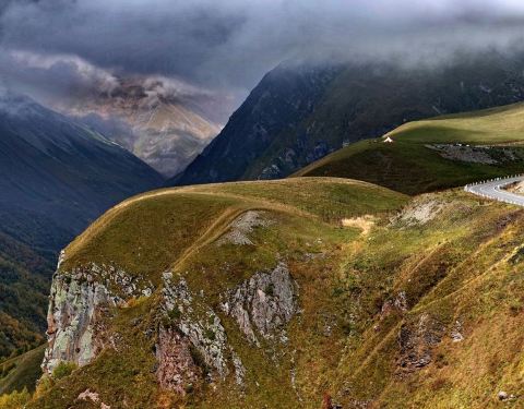 俄格纪念碑其实也是峡谷的观景台,就在俄罗斯和格鲁吉亚边境线上,不得不说,峡谷的风景实在是壮丽无比