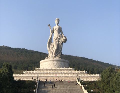 可以观赏花,还有一座很大的神女像。还是不错的。
