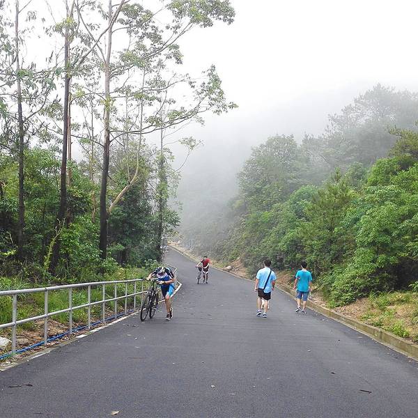 ...地车爱好者,行人不多,这里可真是骑车爱好者的天堂,走到半山腰还起了很大的雾,人好像从仙境里出来