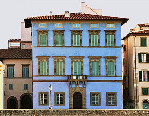 蓝色邸宅,位于比萨市区,是一座历史悠久的蓝色整体外墙装饰的精致的三层小楼,楼内如今是一个以收藏...