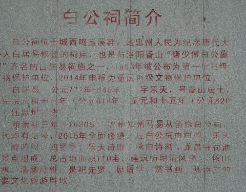 ...,是为纪念中国唐代伟大诗人白居易而修建的祠堂,它始建于宋代,清代重修,是长江沿岸著名的旅游景点