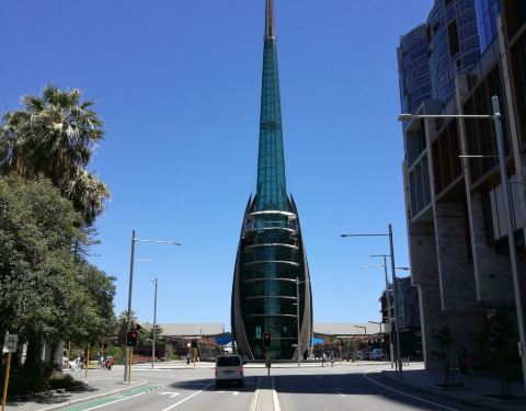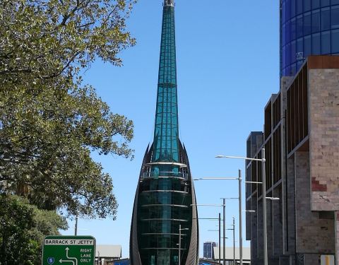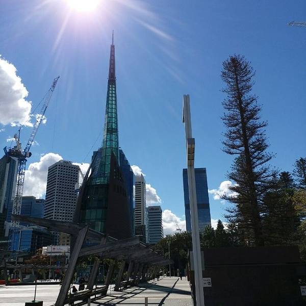 西澳大利亚珀斯的标志性建筑,音乐钟塔,绿色玻璃顶很有特色!晚上可以变换颜色西澳大利亚珀斯的标志性建筑,音乐钟塔,绿色玻璃顶很有特色!晚上可以变换颜色!可以花费买票登塔,钟塔有音乐播放,还是很值得看看的!
