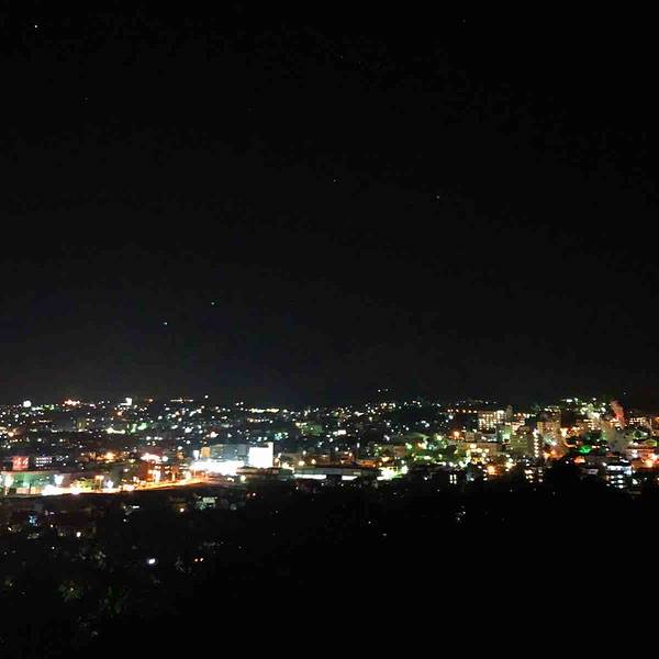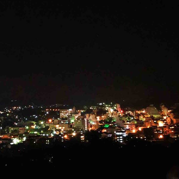 别府的夜晚静悄悄,在铁轮地狱附近吃完晚饭,无意间搜到温泉蒸汽展望台就在不到1公里,于是一路蜿蜒曲折的跟着导航爬上去。结果步行导航无论是谷歌还是百度,全部是错的。到了导航的目的地发现居然是居民区。好在遇到附近跑步回家的中年大叔,重新问清了地址,又一路走了4、5百米才终于顺利到达。