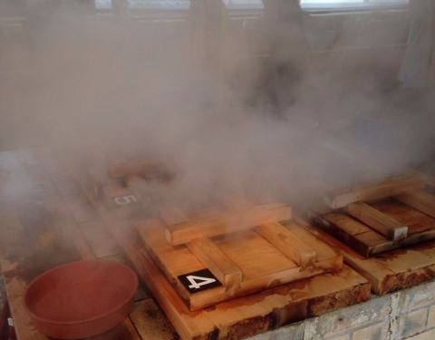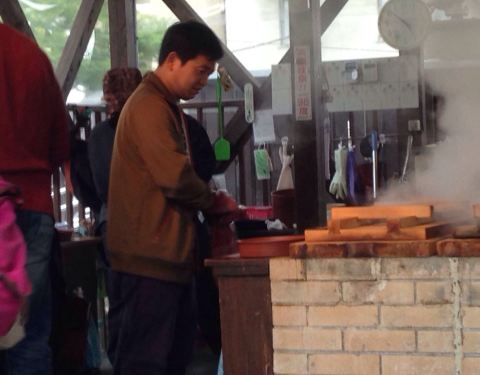 在八大温泉的参观路线中间,根据温泉泉眼地势而建,可以自己动手制作温泉蛋和食品,非常有意思,好像农村的土家灶台,但下面不是炉火而是温泉烟的热量。