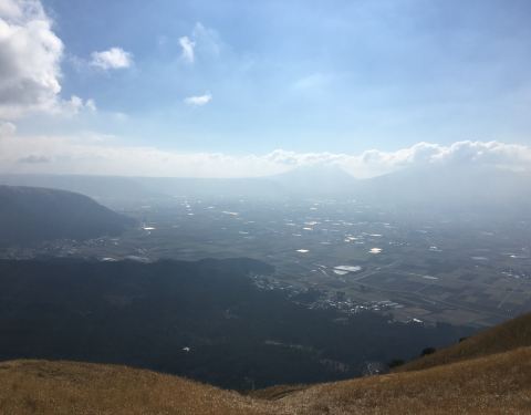 即使是多云的冬天,还是美极了,刚到阿苏时还觉得阿苏有点小家子气,一到这,才发现了不一样的阿苏,好开阔。如果能有时间多等半小时,云雾都散去,阿苏五岳就在眼前,田园村庄在群山的包围庇护下。在草丛里走走跑跑,好舒服。从展望台一直往前发现有条一直往下的小径,估计是可以从这徒步下山,各个方向走走,发现有好几条类似的下山路。下次一定要来感受一下,从不同的高度和角度欣赏风景。夏天草丛都绿的时候应该会更美。