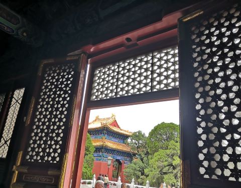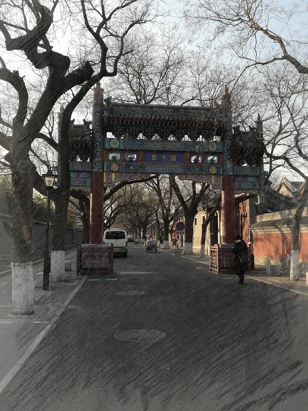最后在方家胡同下了车,跟着导航,走过了一条挺有意义,但当时我们毫无知觉的街巷——国子监街,哎,遗憾遗憾,当时顾着赶路,也没有停下来好好看看。这个时候明显太阳已经开始西落了,比起正午的骄阳,现在的光线更加柔和我觉得最大的乌龙,莫过于我和卷卷在孔庙那里久等同伴不至,温度下来了,冻得脚麻,吐槽另一个室友的迷路,在一次对话指路中,我俩对视一眼,我嘟囔一句“不会咱们来错地方了吧”,顿时,我们都赶忙拿出手机查询。