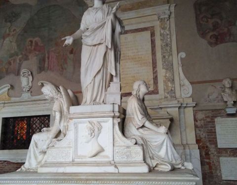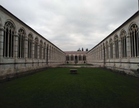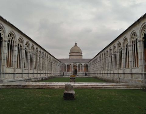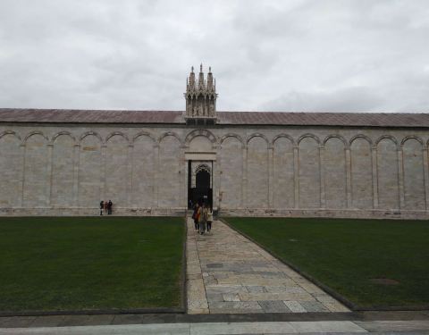 比萨墓园,位于比萨市中心奇迹广场,占地不大,罗马风格建筑,墓园内部中间是一片大草坪,两侧是罗马式回廊,这里埋葬着比萨历史上一些重要的人物。