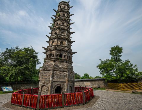 定林寺塔又叫方山斜塔,塔身向北倾斜7.59度,倾斜度超过闻名于世的意大利比萨斜塔,仍堪称“世界...