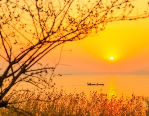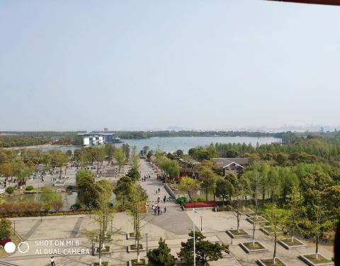 Tips: 地址:泰州市靖江市滨江路 开放时间:全天 门票:免费开放要说靖江生态最好的地方,那一定是牧城公园了。这里目之所及皆是绿色,空气清新,是踏青的首选之地。公园栽种了上百种植物,如木芙蓉、三角枫、五针松等各具特色、适应本地气候的植物,还栽种了中山杉、香橼、香樟等本土树种。走在公园里,数不尽的中山杉、木芙蓉、黑松等在水里、在岸边吐露芳华。碧波荡漾的明湖是公园里最具标志性的景点,九孔桥将明湖一分为二,西边的湖面壮阔如日,东边的湖面温婉如月,湖之“明”字由此而来。行走在岸边,可见湖面广阔,湖中小岛接长堤,长堤连木桥。清风徐来,夕阳与湖面相聚千里,湖面反射着点点天光云影,把对岸的景致烘托地仿佛海市蜃楼般仙气十足。湖面之上的建筑有统一的落地窗,湖光天色融为一体,干净通透。明湖是浪漫的,湖面水汽氤氲,有芦苇有风声,身着婚纱的年轻夫妻,在漫天漫地的美景里,留下此生最缱绻的留影。明湖还是动感的,全国各地的自行车骑友、马拉松爱好者先后在此举办过多次自行车邀请赛、马拉松长跑赛,河堤上不时闪过他们矫健的身姿。绕湖徒步,在天然氧吧里心旷神怡。