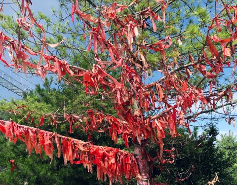 不建议坐缆车,走到顶也就半个小时左右还能看风景。上到山顶看到了杜鹃林,开了部分,五月来应该不错