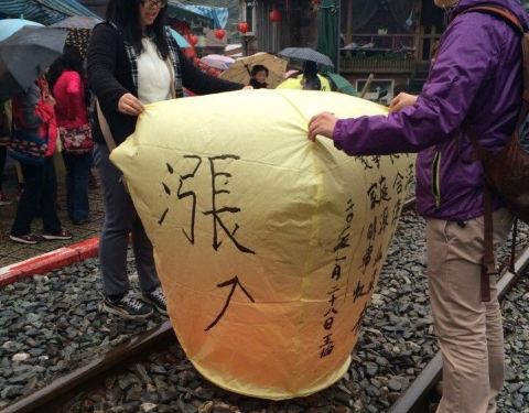 大家在天灯上写上祝福的话语或愿望,在铁道上放飞十分有趣。来到平溪无论如何都不能错过平溪放天灯的活动