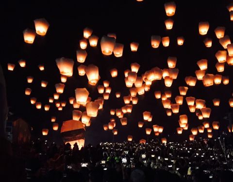 在台湾交换的学期刚好赶上元宵节,趁机去平溪体验了一把国际天灯节,太壮观了几千盏天灯同时放