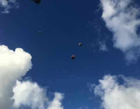 ...,请店家把油纸给摊开固定於天灯底部,点火后天灯马上膨胀,然后放手,祈福的心愿就随着天灯升了起来