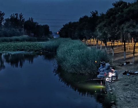 上周日晚饭后去念坛溜达,依然是走大圈,从日落走到天黑,好在公园有路灯,且气温比白天凉快了不少,很舒服,徒步和跑步的人还是有些的,在靠近西北角的湖边,还有钓鱼爱好者在挑灯夜战。