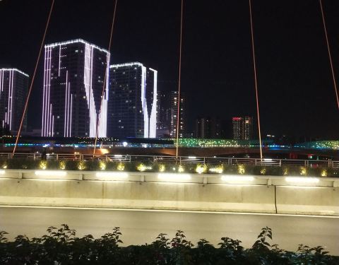 蕉门河湿地公园沿河岸都是徒步与骑行的绿道,环境自然清新,河景优美,可惜阴天灰蒙。广场与蕉门河大桥之夜很梦幻漂亮、浪漫迷人。俺们跻身于河畔万达广场觅食人潮中,纠结于吃啥好!大多要等位,个别不用等的又不想吃。一家客家菜餐厅味道挺不错。